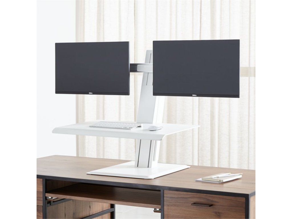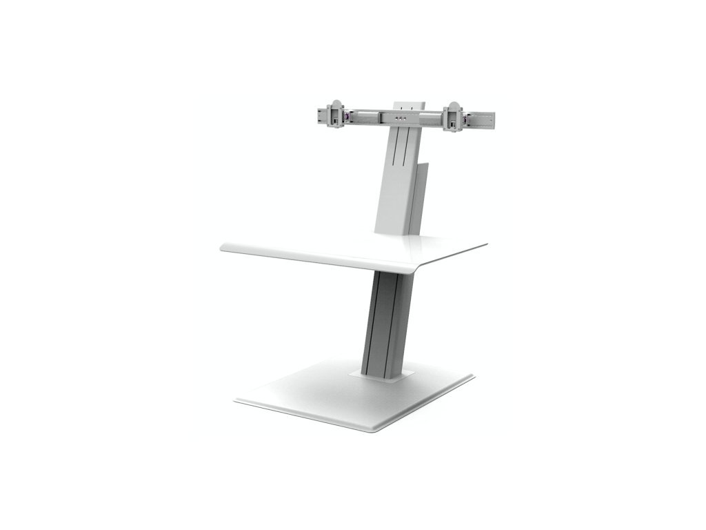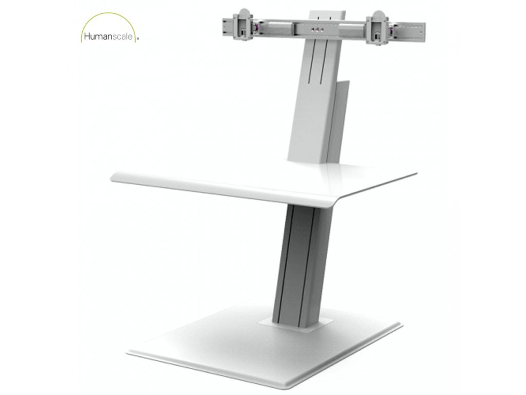 Specyfikacje: QuickStand ECO Model QSEWD Humanscale, na dwa monitory, blat o wymiarach 483 x 711 mm, kolor biały.