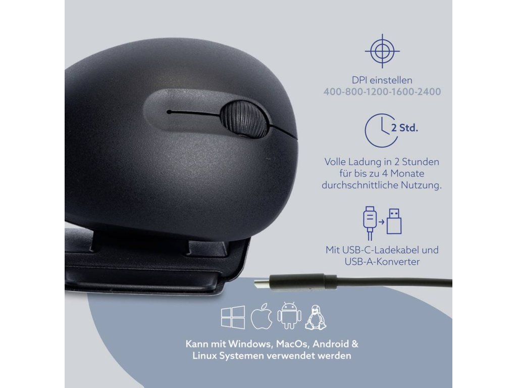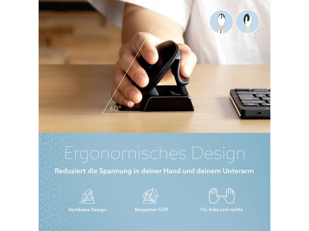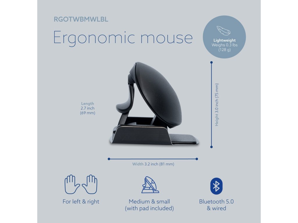 Specifikace: bezdrátová a drátová počítačová vertikální obouruká myš R-GO Tools Twister, model RGOTWBMWLBL.
