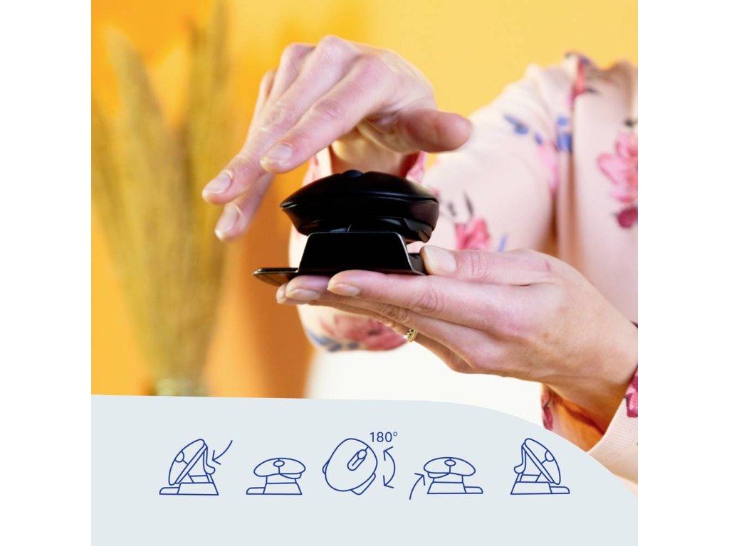 Díky patentovanému systému twist & fold si myš Twister snadno vezmete kamkoliv s sebou. Twister má LED indikátor přestávky, který mění barvu, když je čas na přestávku. S nejnovějším softwarem Break můžete zůstat během pracovního dne fit.