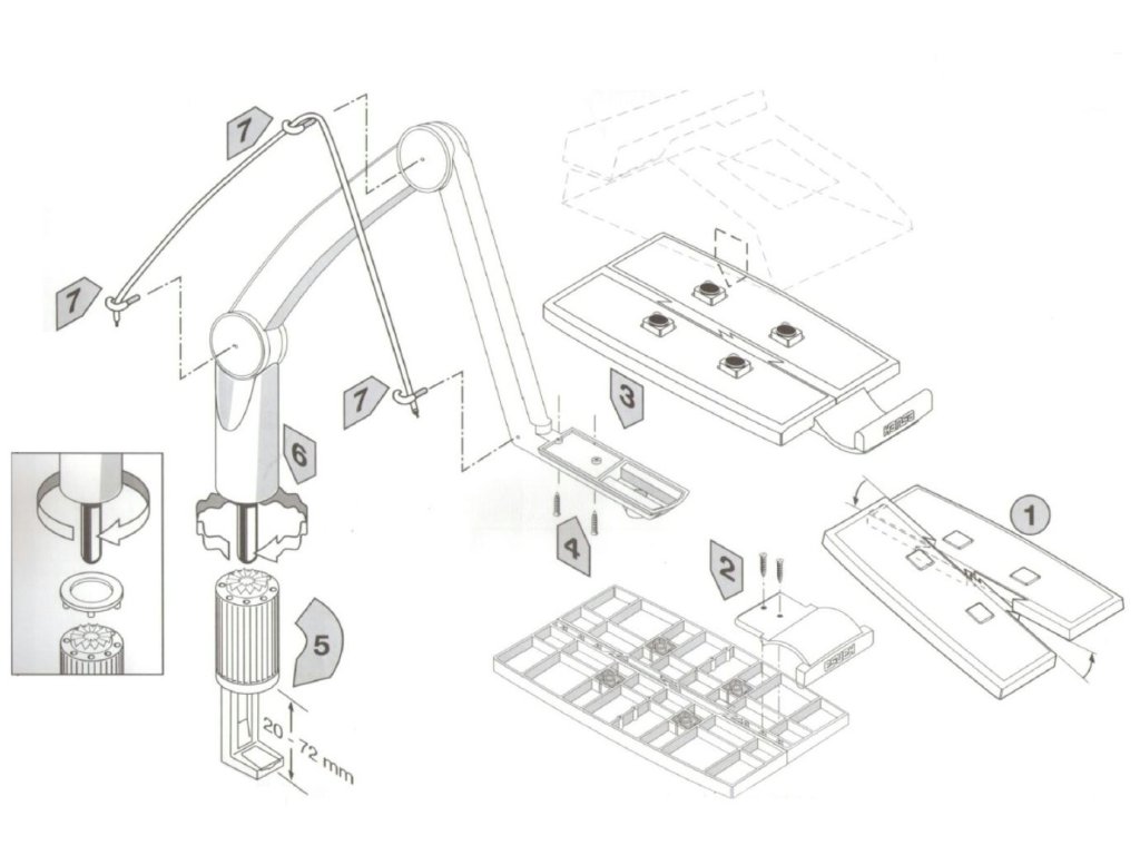 - upevnění svěrkou ke stolové desce v rozmezí 20 - 72 mm