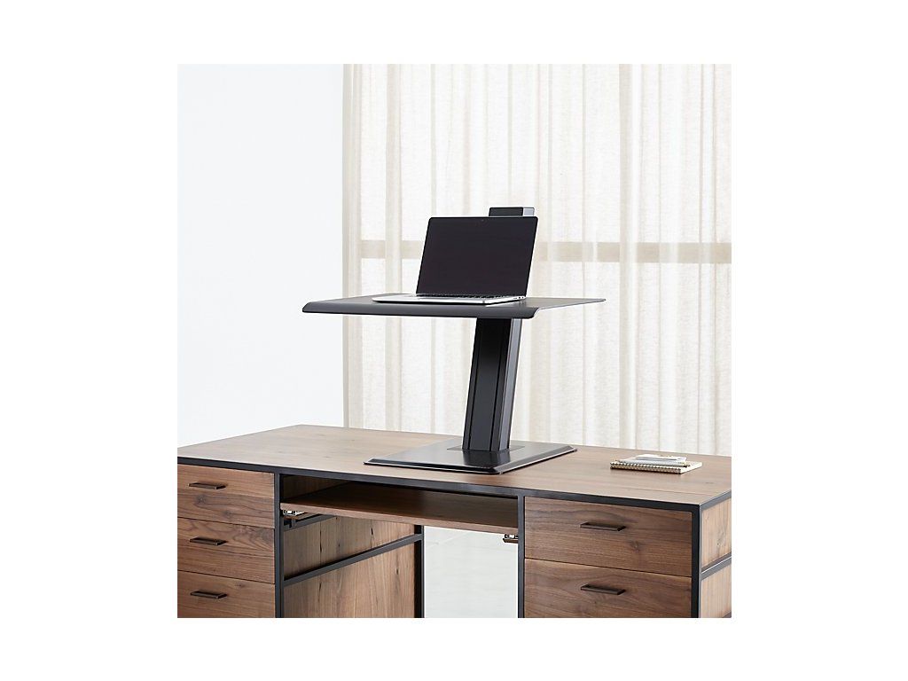 Specifikace: Stolní držák pro notebook, klávesnici a myš QuickStand ECO Humanscale model QSEBL, pracovní deska v rozměru 483 x 711 mm, černá.