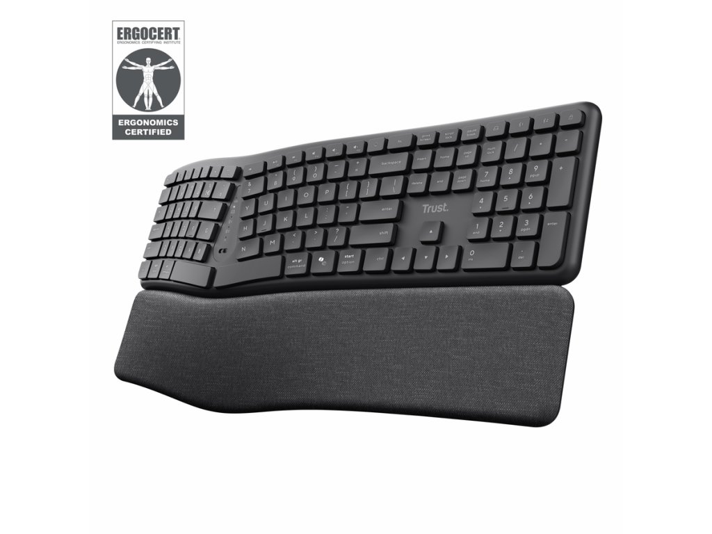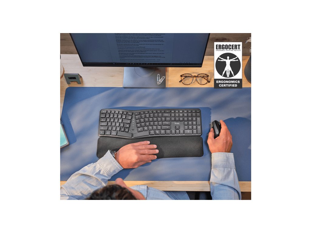 Trust získal prestižní certifikaci ErgoCert pro tento model klávesnice. Tato mezinárodně uznávaná certifikace potvrzuje kvalitní a ověřený výrobek v dané oblasti, který zajišťuje vyšší komfort, zdravější držení těla při dlouhodobém používání a minimalizuje případná zdravotní rizika.