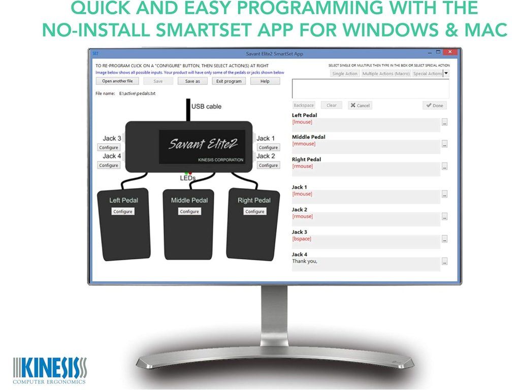Aplikace SmartSet je snadno použitelné grafické uživatelské rozhraní pro programování pedálu Savant Elite2 (SE2). Verze aplikace pro Windows a Mac jsou předinstalovány do flash paměti pedálů pro snadný přístup a všechny přiřazené akce jsou uloženy do pedálu, takže pedál lze přesouvat z počítače do počítače bez přeprogramování.